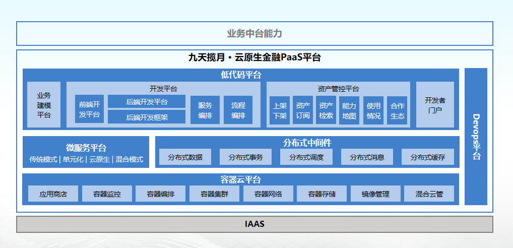 神州信息作为最早一批布局金融系统云原生解决方案的科技企业,已经形成了一套适配银行数字化转型的金融“云原生”架构平台——“九天揽月云原生金融PaaS”平台。